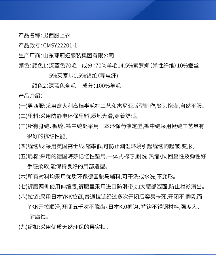 耶莉娅男西服上衣CMSY22201-1
