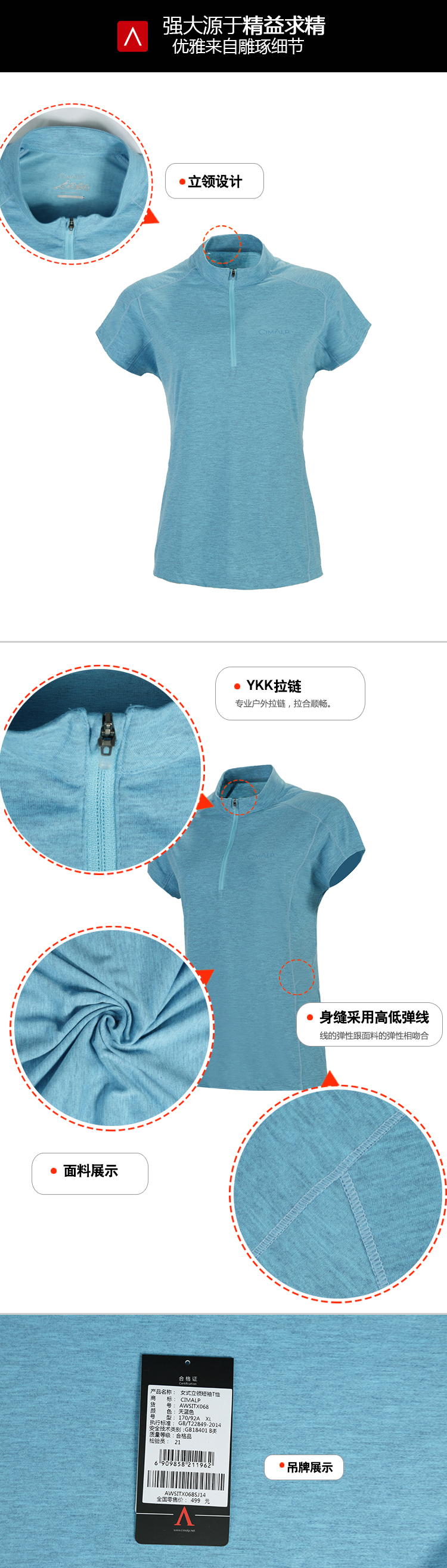 喜玛尔图女式立领短袖T恤AWSITX068