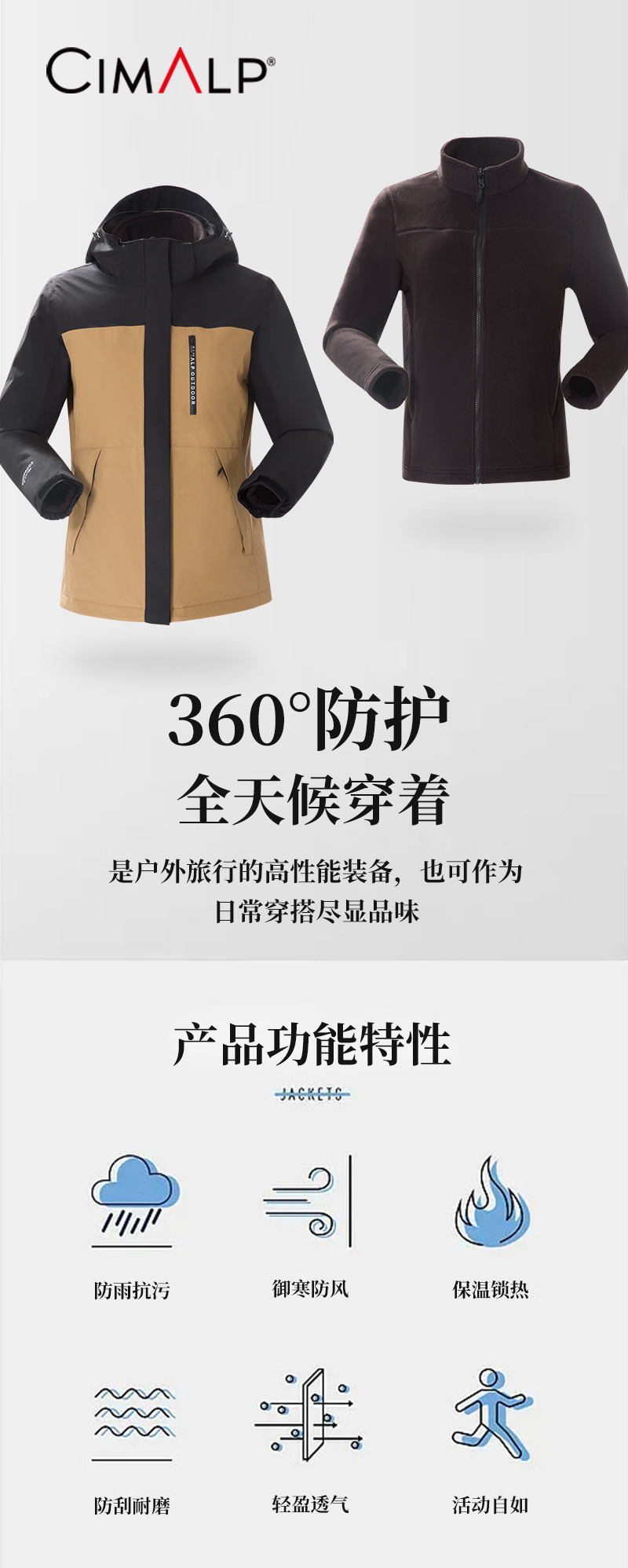 喜玛尔图男式套抓绒胆防风防雨外套冲锋衣AMFPCF071