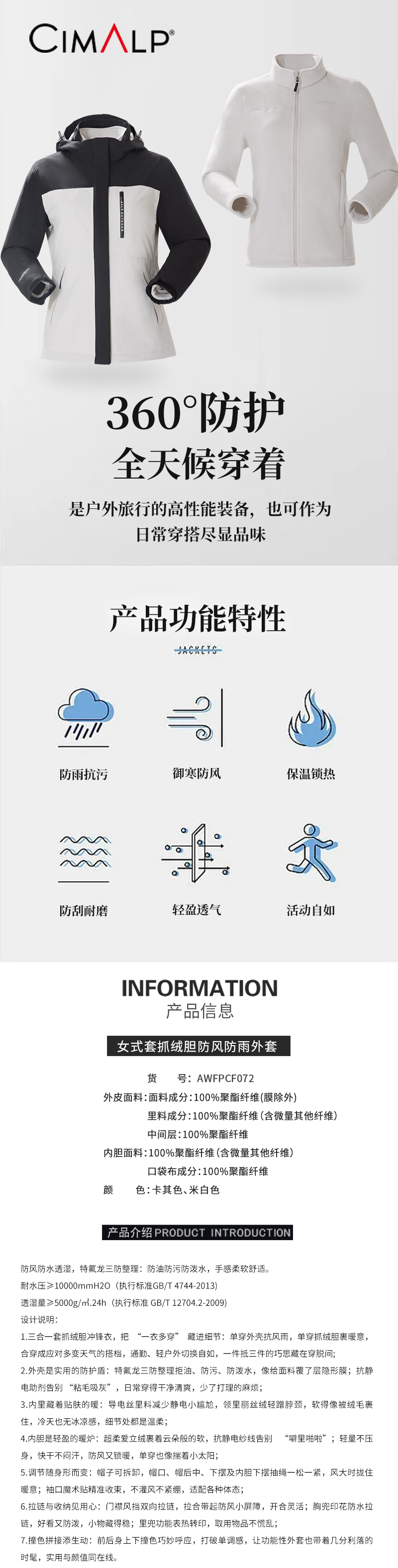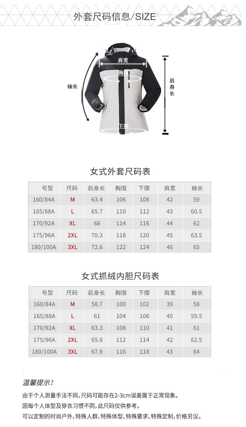 喜玛尔图女式套抓绒胆防风防雨外套冲锋衣AWFPCF072