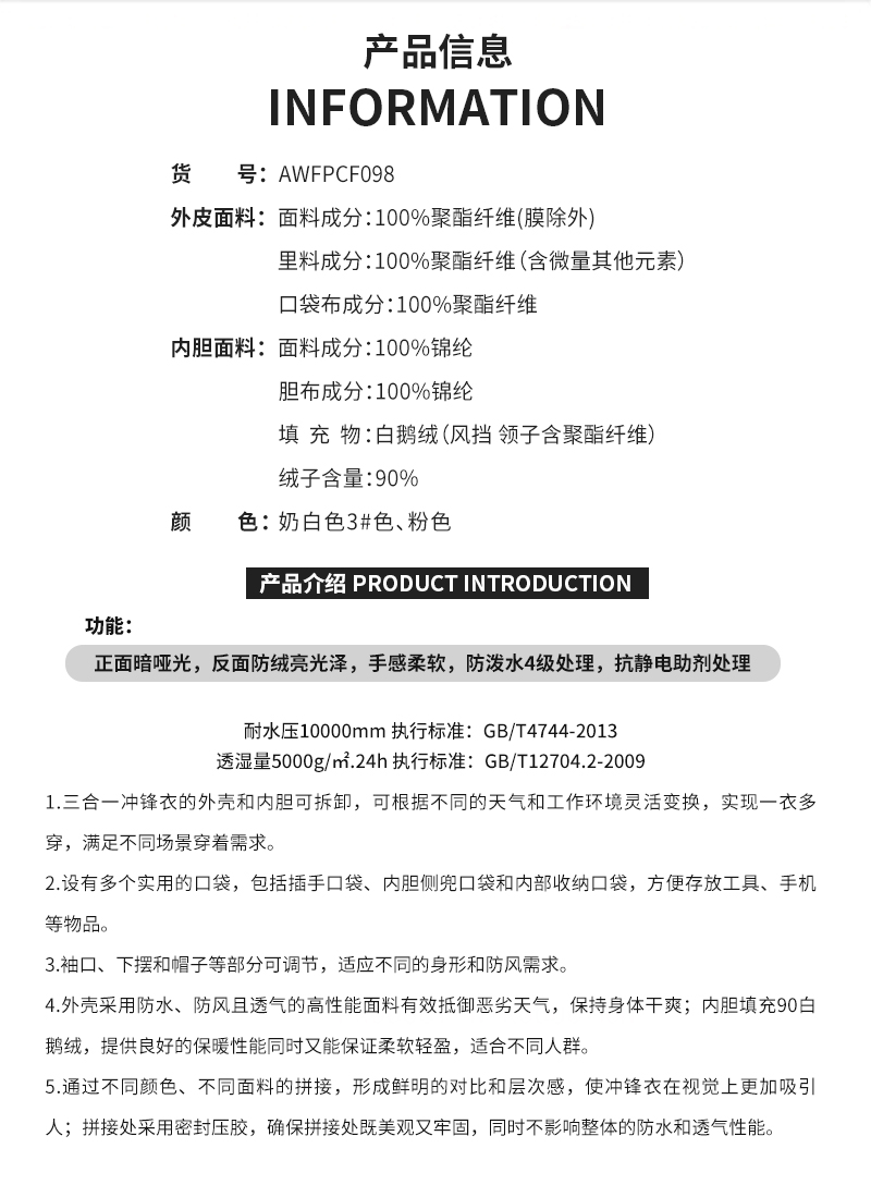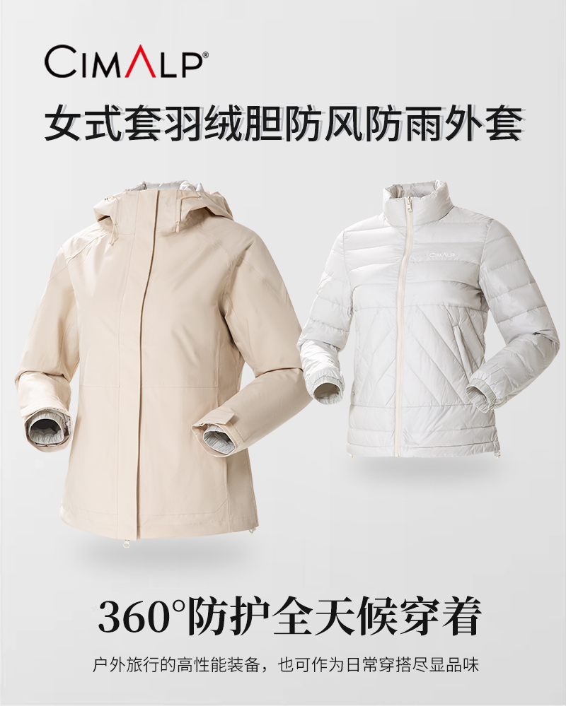 喜玛尔图女式套羽绒胆防风防雨外套冲锋衣AWFPCF098